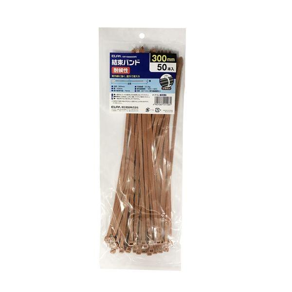 朝日電器メーカーお問い合わせ:042-473-0159●全長:300mm●幅:4.8mm●最大結束内径:76mm●引張強度:22.2kg●使用温度範囲:-40℃~+85℃●材質:66ナイロン(紫外線遮蔽剤入)●50本入●カラー:ブラウン●耐候性●紫外線に強く、屋外で使える