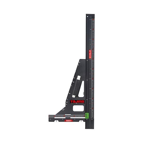 (株)TJMデザインメーカーお問い合わせ:0120-125577●長さ:1000mm。●つきあて:9mm。●精度:1000mmにつき±1mm以内。●【用途】丸鋸用ガイド。●【機能・特長】丸鋸ピッチ、ボードの割付が簡単にできるボード割付マーク付横目盛です。簡易的に角度や勾配を確認できる勾配目盛付です。3種のビス(100/150/200)を簡単にマークできるビスピッチ目盛です。軽くて丈夫な高精度アルミ採用しています。仕舞切りに便利な角度微調整機構です。●【材質】本体:アルミ。ガイド:ステンレス。底面:ゴム。