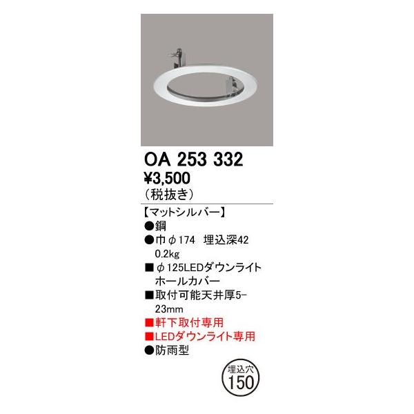 オーデリック ODELIC OA253332 ダウンライトホールカバー LEDダウンライト用ホールカバーOA253332