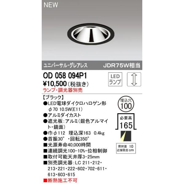 オーデリック ODELIC OD058094P1 LEDダウンライト ダウンライトOD058094P1