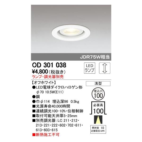 オーデリック ODELIC OD301038 LEDダウンライト ランプ別売 M形