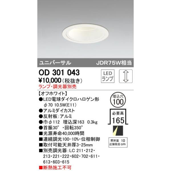 オーデリック ODELIC OD301043 LEDダウンライト ランプ別売 M形 照明器具 基本照明 施設 ベースダウンライト