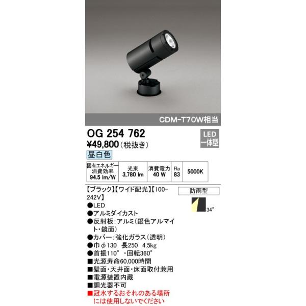 オーデリック ODELIC OG254762 LEDスポットライト 防雨型 ワイド配光 昼白色 エクステリアライト CDM-T