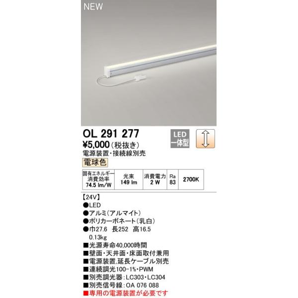 オーデリック ODELIC OL291277 LED間接照明 電球色 OL291277LED間接照明 L300タイプオーデリック