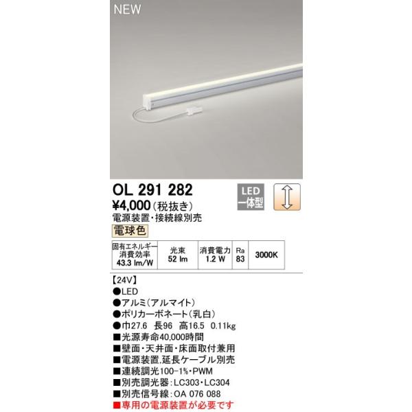 オーデリック ODELIC OL291282 LED間接照明 電球色 OL291282LED間接照明 L100タイプオーデリック
