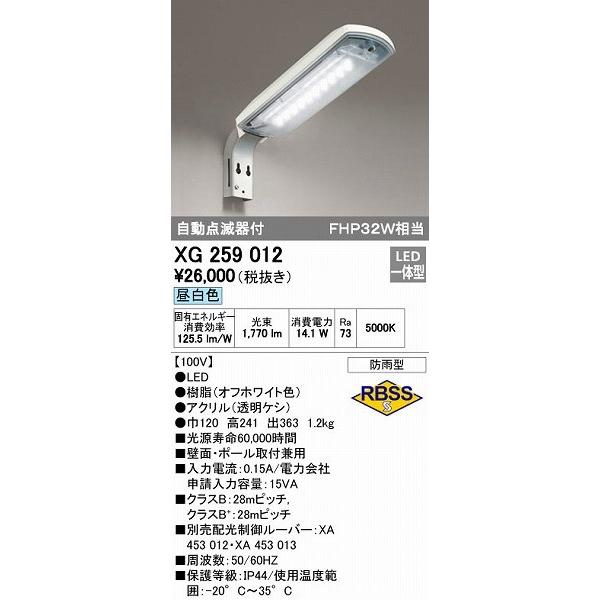 オーデリック ODELIC XG259012 LED防犯灯 自動点滅器付 防雨型 FHP32W相当 XG259012エクステリア