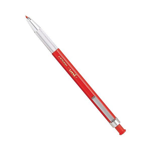 【用途】製図・木材へのマーキング。【機能・特徴】製図・木材へのマーキングに最適です。【仕様】●赤芯。●芯径:2.0mm。●サイズ:軸径9.0×厚さ10.5×全長140.5mm。●重量:11.8g。●ノックカバー色:赤。●軸:ABS樹脂。●グリップ部:ブラス+ローレット加工+クロムメッキ。大工道具 墨つけ基準出し 建築用シャープペン
