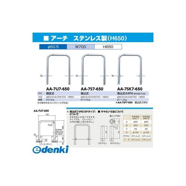 【商品説明】丸みのあるフォルムであらゆる環境にマッチするスタンダードタイプの車止めです。用途・使用場所でに使い分けに対応するため、パイプ径やサイズ、サインプレートの有無、施工方式などバリエーションを豊富に揃えております。タイプ/アーチ 仕様/固定式 材質/ステンレス 仕上げ/カラーH.L.#240 サイズ/φ60.5(t3.0) W700×H650 重量/約9.5kg推奨設置場所/商業施設,公共施設,道路,公園,コンビニ,工場,病院 サンポール sanpole バリカー カーストッパー