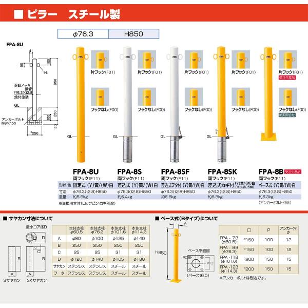【商品説明】直線的なラインが街にリズムを生み出す、スタンダードタイプの車止めです。用途・使用場所での使い分けに対応するため、パイプ径や施工方式のバリエーションを豊富に揃えています。タイプ/ピラー仕様/ベース式,フックなしサイズ/φ76.3(t2.8) H850材質/スチール 仕上げ/焼付塗装 重量/約5.3kg●アンカーボルトは別途です。推奨設置場所/商業施設,公共施設,工場,テーマパーク,病院 サンポール sanpole バリカー カーストッパー