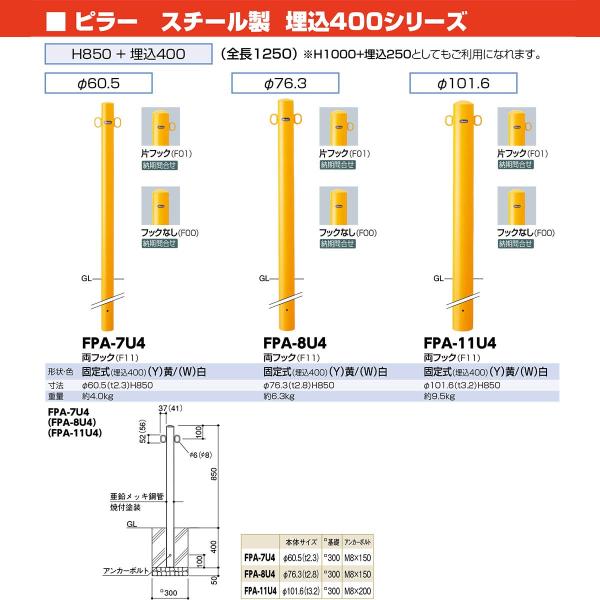 【商品説明】直線的なラインが街にリズムを生み出す、スタンダードタイプの車止めです。用途・使用場所での使い分けに対応するため、パイプ径や施工方式のバリエーションを豊富に揃えています。タイプ/ピラー仕様/固定式,フックなしサイズ/φ76.3(t2.8) H850+400材質/スチール 仕上げ/焼付塗装重量/約6.3kg●H1000+埋込250としてもご利用になれます。推奨設置場所/商業施設,公共施設,工場,テーマパーク,病院 サンポール sanpole バリカー カーストッパー