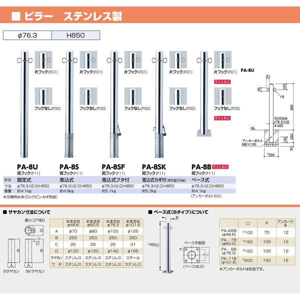 【商品説明】直線的なラインが街にリズムを生み出す、スタンダードタイプの車止めです。用途・使用場所での使い分けに対応するため、パイプ径や施工方式のバリエーションを豊富に揃えています。タイプ/ピラー仕様/固定式,両フックサイズ/φ76.3(t2.0) H850材質/ステンレス 仕上げ/カラー #400 重量/約4.1kg推奨設置場所/商業施設,公共施設,工場,テーマパーク,病院 サンポール sanpole バリカー カーストッパー