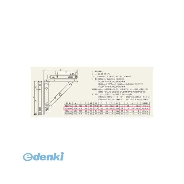 【商品説明】●折りたたみ式棚受け金具です。狭いスペースのキッチン回りや家車スペースの棚受けに最適です。机を少し大きくしたい 。便利な折りたたみテーブルも簡単に作れます。アイデア次第でスペースを有効活用できます。●ストッパー機構で安全●材 質:鋼板●付 属ビス:丸皿木ネジ(ユニクロ)M3.8×16(6本)、M3.8×20(6本)●耐荷重:40 kg(●耐荷重は2 本当たりの数値です。また、壁面への取付方法、取付ピッチによっても変わってくる事がありますので参考値です。)●梱 包:1セット (2本)ビニール袋入り●色:白●サイズ:200mm