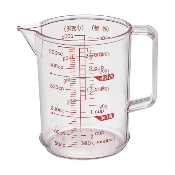 アスベルメーカーお問い合わせ:0743-59-1125【特長】●熱湯を注げる耐熱タイプです。●見やすい目盛り付です。【仕様】●容量(ml):500●目盛間隔(ml):10●外径(mm):88●高さ(mm):115●耐熱温度(℃):100℃●最大幅(mm):127【仕様2】●取手付【材質/仕上】●AS樹脂【注意】●火のそばで使用しないで下さい。●2ケース以上で元払いです。【原産国】日本