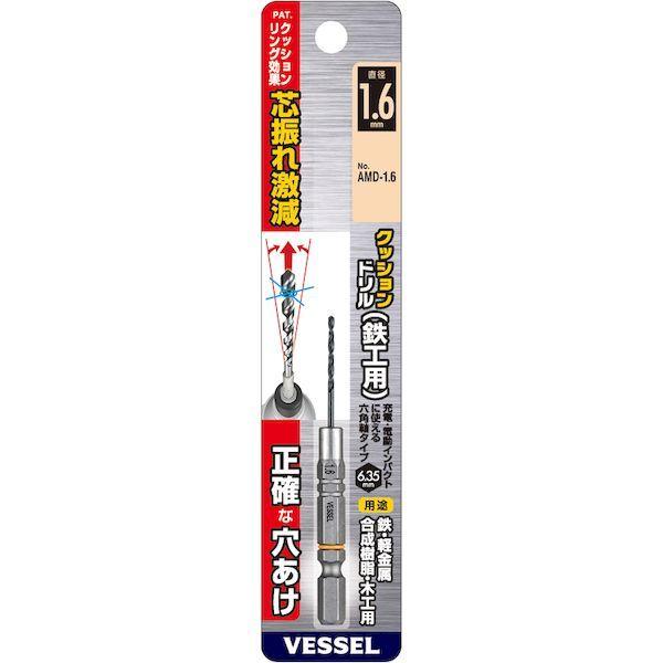 ベッセルメーカーお問い合わせ:0120-999-914【特長】●樹脂リングが芯振れ・ガタつきを抑制し、正確な穴あけを実現します。●芯振れ激減で高速穴あけができます。●食い付き性がよく、ポンチ(ドリルの先端が逃げないように穴の中心を決めるマーキング)が不要です。(効果を発揮するφ3.0mm以上に採用しています。)●高硬度HSS(ハイス鋼)で、鋭い切れ味が持続します。●溝加工したドリルを軸に、プレス絞りで一体化しました。(結合力を高めるため、φ1.8mm以上は2面カットを入れてさらに強化しました。)【用途】●被削材:鉄、軽金属、合成樹脂、木材。【仕様】●刃径(mm):1.6●溝長(mm):20●全長(mm):76●シャンク径(mm):6.35【仕様2】●18Vインパクト対応●6.35mmの六角軸タイプ●X形シンニング(φ3.0mm以上)【材質/仕上】●高速度鋼(HSS)【注意】●穴あけ直後のドリルは高温になり、やけどの恐れがありますので、十分にご注意ください。●加工物はしっかり固定し、ドリルを加工物に対して直角に押し付けてください。●インパクトドライバーでの使用はしないでください。●必ず保護眼鏡を着用してください。●製品に摩擦や欠けがある場合には使用しないでください。【原産国】中国