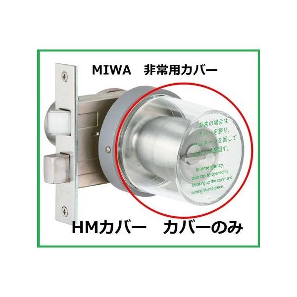 【商品説明】●美和ロック(MIWA)の純正品です!●特徴:既設の美和ロック(MIWA)錠前(ドアノブ)に取付可能なカバー式非常装置で非常時にカバーを割ってドアノブを解錠します。 ●取付可能錠前:MIWA HM・145HM※注意※美和ロック 純正品 HMカバーの「取付枠」は設置側のノブを取り外さなければ取付できません。 サムターン側の扉厚が2mm増えます! ●材質:プラスチック※注意※新規取付の際は台座付きの非常用カバーをご購入下さい。●詳細:この製品は交換用の為の枠(台座)は付属しておりません(丸カバーのみとなります)。 ノブ・錠前は付属しておりません!