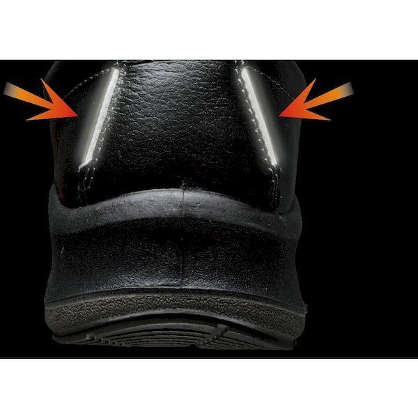 ミドリ安全メーカーお問い合わせ:048-989-3177【特長】●靴底から静電気を逃し、スパークを防止します。●靴型を刷新し、かかと・土踏まず部のホールド力を高めることで、優れたフィット感を実現しました。●ほどけにくい「ウーリーナイロン」の靴紐は伸縮性があり、甲部の締め付け感をソフトにします。●さらに快適になった新ワイド樹脂先芯を搭載しました。●甲部にクッション材を内装し、足当たりがソフトです。●靴底のかかと中央部に一段低く配置されたブロックが接地時に衝撃を分散させます。●つまずき防止のため、つま先とサイドの靴底を斜めにカットしました。●かかと部分に縦2本の反射材を配置しました。●最高レベルの耐滑性を誇り、耐久性にも優れる新型ソールです。【仕様】●寸法(cm):26.0●足幅サイズ:EEE●色:ブラック●耐圧迫荷重(kN):10±0.1●電気抵抗値:1.0×10[[の5-8乗]]Ω(23℃ C2)●電気抵抗値(Ω):1.0×10[[の5-8乗]]Ω(23℃ C2)●US(アメリカ)規格サイズ:8●UK(イギリス)規格サイズ:8●EU(ヨーロッパ)規格サイズ:42【仕様2】●JIS T 8101 革製S種〈普通作業用〉E・F合格●JIS T 8103 ED-P/C2合格(一般静電靴)●中敷:プレミアムインソール(抗菌・防臭)●耐圧迫性荷重:10±0.1kN【材質/仕上】●甲被:牛クロム革(ソフト型押)●先芯:新ワイド樹脂●靴底:発泡ポリウレタン2層底【注意】●質量は26.0cmを基準にした標準質量です。【原産国】ラオス