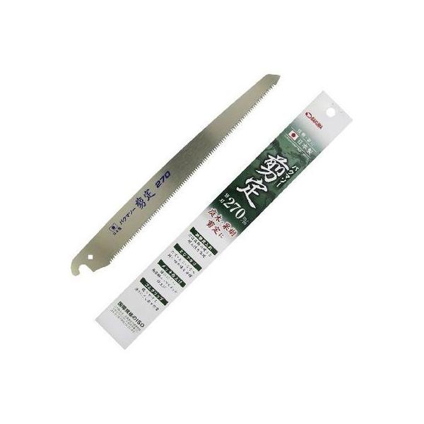 【商品説明】「バクマソー 「剪定」 替刃式剪定鋸 」用替刃 庭木・果樹の剪定用。信頼・安心の日本製。替刃(別売り)の交換で切れ味が戻ります。交換は工具不要で簡単です。「衝撃焼入れ」刃は抜群の硬さと耐久性を実現。「とびアサリ」たて・よこ・ななめ切断においても鋭い切れ味を発揮。「メッキ仕上げ」錆びにくい無電解表面ニッケルメッキ仕上げ。刃渡り:270mm、板厚:0.6mm、切り溝幅:1.0mm±0.05、刃のピッチ:2.4mm、材質SK-5