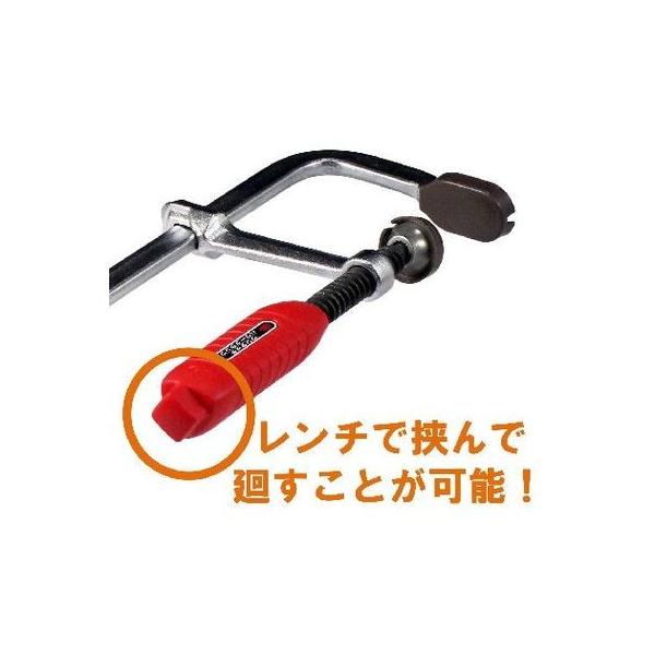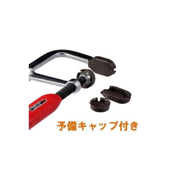 【商品説明】接着作業、溶接作業、機械加工、木工加工での材料固定に。バーは鍛造製のため強靭、反りや曲がりに強く丈夫です。グリップエンドに17mm角の突起を設けていますので、スパナ等で強力な増し締めが可能です。キャップ部分が可傾式(約20度)なので勾配があっても締付け・押さえが楽に出来ます。付属品:キャップ(本体の付いている他に予備が1組付属) くわえられる厚み:250mm くわえられる奥行:80mm