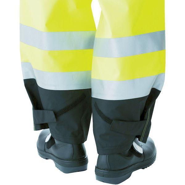 ミドリ安全メーカーお問い合わせ:048-989-3177【特長】●防水透湿素材として最高水準のゴアテックス生地を使用しています。●JIS T 8127(高視認性安全服)クラス1に適合した高視認仕様です。(上下セット着用時クラス3)●蛍光色に加え、反射材を効果的に配置しあらゆる状況下で明視しやすい雨衣です。●家庭用洗濯機による洗濯、ドライクリーニング(石油系)ができ、長く着用が可能です。●別売りの防寒用インナーを装着すれば、オールシーズン使用可能です。【仕様】●色:蛍光イエロー●サイズ:M●ウエスト(cm):110●股下(cm):72●身長(cm):160~170●仕上がり寸法:ズボン丈101cm、股下72cm、ウエスト110cm、ウエスト仕上がり66cm、裾回り51.5cm【仕様2】●耐水圧:36000mm以上●JIS T 8127(高視認性安全服)クラス1適合●裾絞り機能付【材質/仕上】●ポリエステル●ゴアテックスメンブレン●ナイロントリコット【注意】●質量はLサイズ基準の平均質量です。【原産国】中国