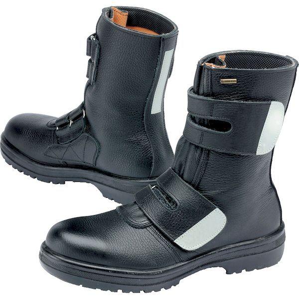 ミドリ安全メーカーお問い合わせ:048-989-3177【特長】●世界最高水準の防水浸透素材ゴアテックスファブリクスを使用しました。●耐摩耗性・耐滑性に優れ、屈曲性も高いラバーテックソールです。●バンド部と後方部に夜間での視認性を高める大型の反射材を使用しました。●外側からの水の侵入を防ぎ、汗の水蒸気は素早く放出。靴内をドライで快適に保ちます。【用途】●夜間作業●防災●建設●運輸業●点検整備●倉庫業務【仕様】●寸法(cm):25.5●足幅サイズ:EEE●色:ブラック●耐圧迫荷重(kN):10±0.1●US(アメリカ)規格サイズ:7.5●UK(イギリス)規格サイズ:7.5●EU(ヨーロッパ)規格サイズ:41【仕様2】●JIS T8101 C1/S/P1/F1●耐圧迫性荷重:10±0.1kN【材質/仕上】●甲被:牛クロム革(ソフト型押・ゴアテックスファブリクス)●先芯:ワイド樹脂●中敷:EVAカップインソール(抗菌・防臭)●靴底:ラバー2層底【注意】●質量は26.0cmを基準にした標準質量です。●中敷きを交換する場合は、ミドリ安全が推奨する同等品を使用してください。(JIS T8101安全靴の規定より)【原産国】日本