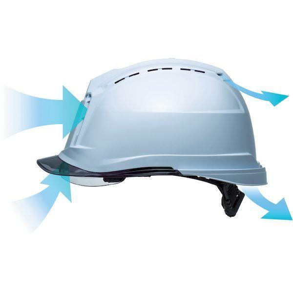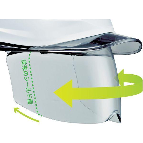 ミドリ安全メーカーお問い合わせ:048-989-3177【特長】●優れた通気性能で、熱中対策に貢献します。(従来品に比べ、約3℃のヘルメット内部温度の低減が可能)●帽体と内装の重量最適化を図り、軽量かつ強度の両立を実現しました。(従来品比-30g)●収納可能な業界最大幅のワイドシールド面で、側面からの飛来物からも眼を守ります。(従来品比+63mm)●安全性・快適性を追求したハイスペックモデルです。●ワンタッチで内装の簡易着脱が可能です。●後頭部から雨水を逃がす、新形状のレインガードが付いています。●角のないスムース設計の新型RAバンドで、後頭部にフィットし、被り心地が更に向上しました。●ワンタッチで簡単にシールド面の交換が可能です。●光の歪み、屈曲を最小限に抑えたワイドシールド面です。【用途】●飛来・落下物用。●墜落時保護用。【仕様】●頭囲(cm):52.5~63●帽体色:ホワイト●バイザー色:ブルー●シールド色:クリア●高さ(mm):148●幅(mm):227●長さ(mm):293【仕様2】●衝撃吸収αライナー付●新型RAバンド●M型ワンタッチあごバンド●脱げ防止機構●国家検定合格品●シールド面衝撃強度:JIS T8147準拠/ハードコーティング【材質/仕上】●帽体・シールド面:ポリカーボネート樹脂【注意】●シールドは飛来物・飛来粉じん・薬品飛沫などから目や顔を守るものです。溶接作業やレーザー作業には使用しないでください。【原産国】日本