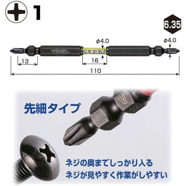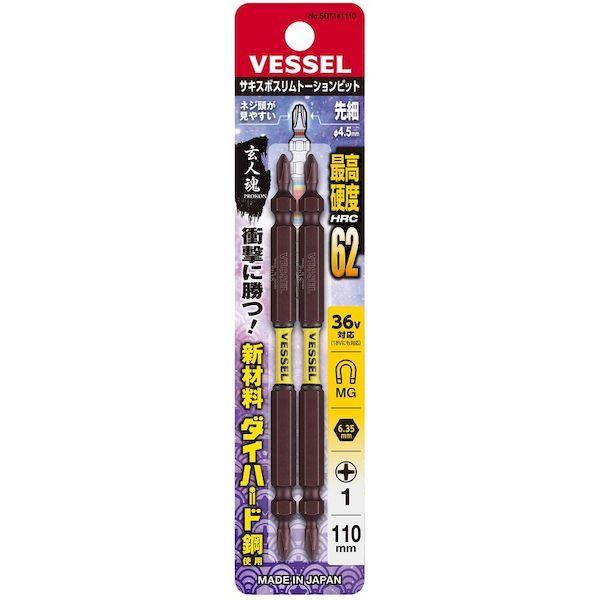 ベッセルメーカーお問い合わせ:0120-999-914【特長】●刃先が先細形状になっており、ねじ頭が断然見やすく作業効率が大幅に上がります。●強さと粘りのある新素材により電動インパクトの高速・高トルク化に対応しました。ドリルネジやコーススレッドネジに適しています。●ダブルトーション効果で、電動インパクトの衝撃を吸収し、耐久性が大幅にUPします。●ネジ着座前の小さな衝撃を緩和するので締め込み作業が安定します。【用途】●ダクト、サイディングなどでのドリルネジ作業。●根太打ち、コンパネ取り付け、2X4などのロングビス、プラグレスビス。●内装造作、家具・木工、コンパネ取り付けやボード、ドライウォール作業。●設備、電気工事に。【仕様】●刃先:[[+]]1●全長(mm):110●タイプ:両頭●セット内容:[[+]]1×110mm…2本●セット内容(本):2●差込寸法(mm):6.35●シャンク径:6.35mm【仕様2】●36Vインパクト対応●先端:マグネット入り●両頭タイプ【材質/仕上】●新素材”ダイハード鋼”【注意】●作業時は、保護メガネを着用してください。●必要以上に無理な力で使用しないでください。工具は、本来の使用目的以外で使用しないでください。●電流が流れているものには使用しないでください。●正しい用途・サイズ・使い方を確かめてご使用ください。●改造しないでください。加熱・加工等をした場合は、著しく品質の低下を招きます。【原産国】日本