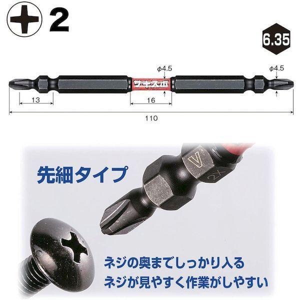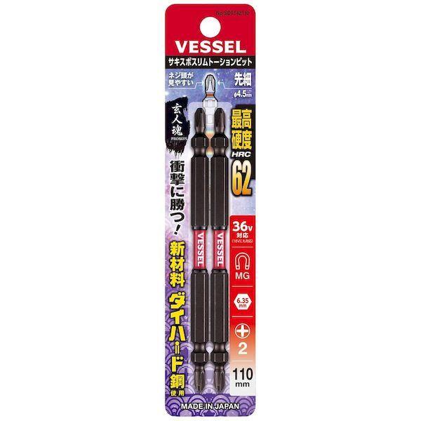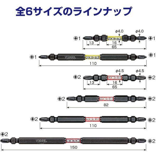 ベッセルメーカーお問い合わせ:0120-999-914【特長】●刃先が先細形状になっており、ねじ頭が断然見やすく作業効率が大幅に上がります。●強さと粘りのある新素材により電動インパクトの高速・高トルク化に対応しました。ドリルネジやコーススレッドネジに適しています。●ダブルトーション効果で、電動インパクトの衝撃を吸収し、耐久性が大幅にUPします。●ネジ着座前の小さな衝撃を緩和するので締め込み作業が安定します。【用途】●ダクト、サイディングなどでのドリルネジ作業。●根太打ち、コンパネ取り付け、2X4などのロングビス、プラグレスビス。●内装造作、家具・木工、コンパネ取り付けやボード、ドライウォール作業。●設備、電気工事に。【仕様】●刃先:[[+]]2●全長(mm):110●タイプ:両頭●セット内容:[[+]]2×110mm…2本●セット内容(本):2●差込寸法(mm):6.35●シャンク径:6.35mm【仕様2】●36Vインパクト対応●先端:マグネット入り●両頭タイプ【材質/仕上】●新素材”ダイハード鋼”【注意】●作業時は、保護メガネを着用してください。●必要以上に無理な力で使用しないでください。工具は、本来の使用目的以外で使用しないでください。●電流が流れているものには使用しないでください。●正しい用途・サイズ・使い方を確かめてご使用ください。●改造しないでください。加熱・加工等をした場合は、著しく品質の低下を招きます。【原産国】日本
