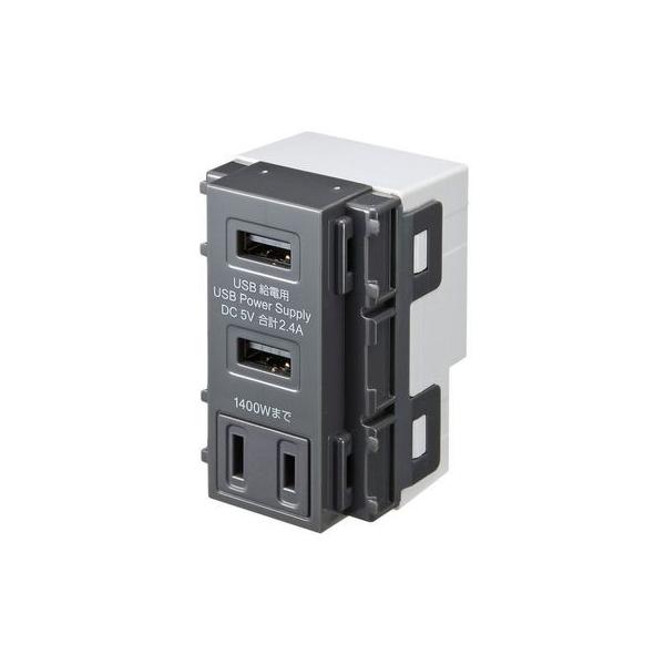 サンワサプライメーカーお問い合わせ:03-5763-0011【商品説明】●5V 2.4A高出力急速充電が可能な2ポート壁埋め込み型USBコンセントです。●自動判別機能搭載、接続された機器(スマートフォン、タブレット)を瞬時に自動判別し急速充電が可能です。●ACコンセントが1個付いており、個別に電源が取ることができます。又、既設のダブル、トリプルコンセントからの置き換えが簡単に行えます。●空港、ホテル、飲食店などの商業施設やオフィス、一般家庭のコンセントなどに取付が可能です。●定格入力:100V 50Hz-60Hz●定格出力(USB):DC 5V 2.4A●定格出力(AC):100V 14A(1400Wまで)●使用周囲温度:-10℃~40℃