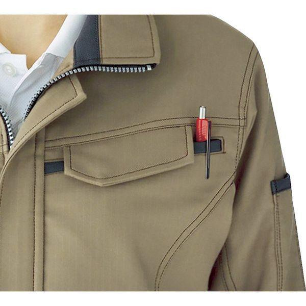 ミドリ安全メーカーお問い合わせ:048-989-3177【特長】●女性向けの機能と美しいシルエットを両立しました。●袖部の新立体裁断構造により、360度ストレスのない快適な腕の動きを実現しました。腕を上げても裾が持ち上がらず、インナーが出るのを防ぎます。●ストレッチ性のある生地を使用しています。●内側に収納ポケット付です。●日本乳がんピンクリボン運動対象商品です。【用途】●作業現場用として。●建設業。●製造業。●運輸業。●点検・整備。●物流。●引っ越し。●ビルメンテナンス。●清掃。【仕様】●色:シルバーグレー●サイズ:13●着丈(cm):64●胸囲(cm):114【仕様2】●帯電防止作業服JIS適合品【材質/仕上】●ポリエステル80%、綿20%●リップストップツイル●ファスナー、ドットボタン:樹脂【注意】●海外生地・染色のため、若干の色ブレが発生することがあります。【原産国】ベトナム