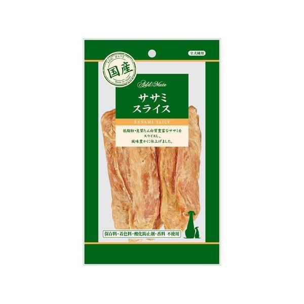 【商品説明】アドメイト 犬 ドッグフード おやつ スナック 間食 ジャーキー 素材 ささみ 鶏 スライス●低脂肪・良質たん白質豊富なササミをスライスし、風味豊かに仕上げました。●保存料・着色料・酸化防止剤・香料不使用。●じっくり乾燥することで素材本来の旨味を凝縮。●噛み応え抜群のハード仕上げ。●原材料:鶏ササミ●保証成分:粗たん白質72.5%以上、粗脂肪1.5%以上、粗繊維0.1%以下、粗灰分5.5%以下、水分15.0%以下、ナトリウム0.3g以下●エネルギー:368kcal/100g●賞味期限:1年●原産国または製造地:日本