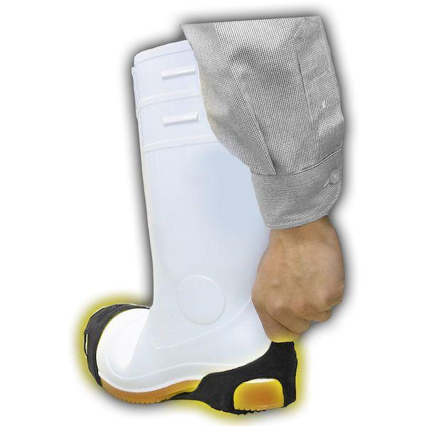 日進ゴムメーカーお問い合わせ:086-243-2456【特長】●やわらかい特殊ゴムと階段状意匠により、氷・雪で凸凹とした地面や大理石のようなツルッとした床でもしっかり接地します。●地面に接地した際に、意匠に施した溝により吸盤効果が発生し、地面に吸い付くことで滑りにくい効果があります。●柔らかいゴム配合により、床を傷つけません。●折り畳んで持ち運びしやすいので、いつでも簡単に着脱できます。【仕様】●適応靴サイズ(cm):25.5~30.0【材質/仕上】●合成ゴム【原産国】日本