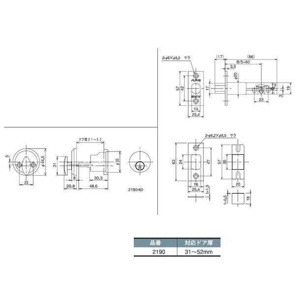 アルファメーカーお問い合わせ:045-787-8431【商品説明】●玄関の補助錠に●バックセット(mm):60●色(仕上げ):黒塗装●対応ドア厚:31~52mm