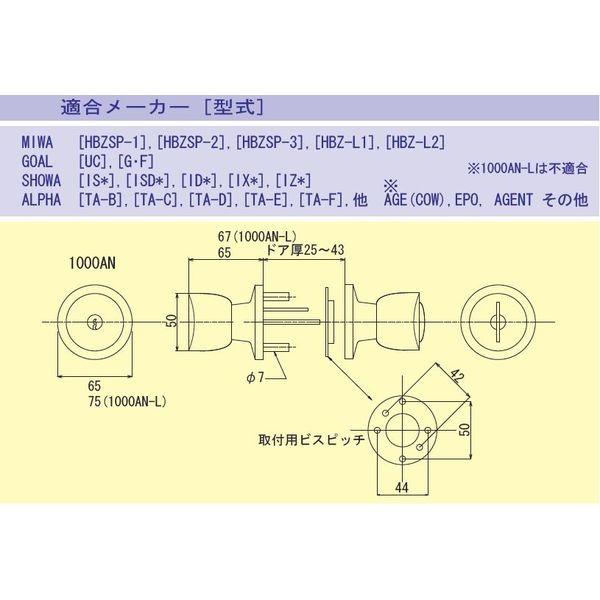 【特長】●1スピンドル型のインテグラル錠に対応しています。(MIWA HMシリーズ以外)【用途】●事務所、工場内ドア。【仕様】●丸座径(mm):65●取付ビスピッチ(mm):42・44・50【仕様2】●5本ピンシリンダ●キー3本付●適合扉厚25~43mm【材質/仕上】●外部:ステンレス(SUS304)●内部:スチール(SPCC)●シリンダー内部:真鍮【原産国】日本