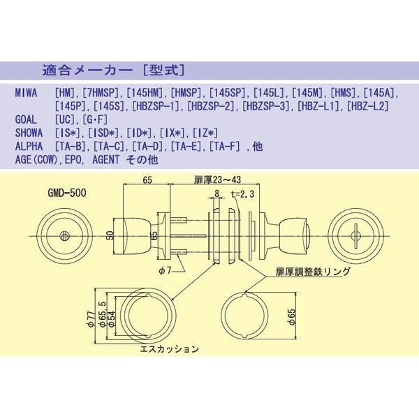 【商品説明】●国内メーカーのほぼ全てのインテグラル錠に対応する万能タイプ●スピンドルを選択し差し込むことにより1スピンドル型、2スピンドル型の両方に対応します。●本体取付ビスピッチは3種類(42mm・44mm・50mm)●取付扉厚は、23mm~43mm迄対応します。●取付跡を隠すΦ77mmエスカッション付●同一鍵も製作可能です。●ピッキングに強い高性能ディンプルシリンダーを内蔵●3方向から合計15本のピンとアンチピッキングピンにより、耐ピッキング性能は10分以上を取得(レベル3段階の最上位)●キーはリバーシブルで差込やすいディンプルキー5本付