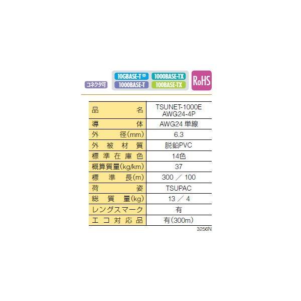 【商品説明】●品名:TSUNET-1000E AWG24-4P●導体:AWG24 単線●外径(mm):6.3●外被材質:脱鉛PVC●標準