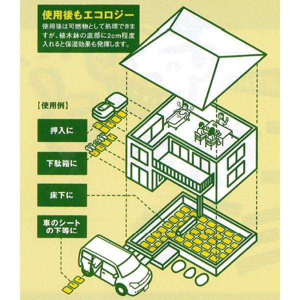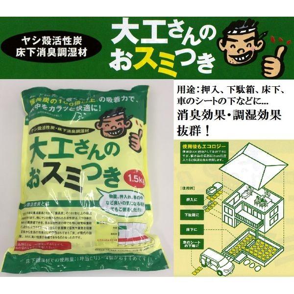 【商品説明】●特徴1:ヤシ柄活性炭消臭調湿材!床下に敷くだけ!備長炭の100倍以上(※市販の一般的な備長炭と比較して)の吸着力で家中をカラッと快適に!ヤシ柄活性炭とは・・・活性炭は、木炭の最高級品とされる「備長炭」の100倍以上の吸気吸着機能があります。特にヤシの殻から作られる活性炭は、ミクロ単位の微細な孔が高密度で分布。数ある活性炭の中でも特に吸気吸着能力が高く、自分の大きさの約1000倍もの表面積で湿気や臭気を吸着します。古来から生活の知恵として活用されてきた「炭」が現代の技術と結実し、さらに高い効果を発揮できるものとなったのです。●特徴2:シックハウス対策(シックハウス症候群の原因とされる化学物質を吸着し、健康を守ります)、消臭(気になる住まいのニオイを抑制。快適な住環境を生み出します)、湿気やカビ・結露を抑制(優れた除湿能力は、気密性の高さがアダとなって湿気の害が起こりやすい昨今の住宅に最適です)、除湿効果は半永久的(活性炭の除湿効果は半永久的に持続します。お手入れ不要で取り替える必要もなくラクラクです)、押入れや下駄箱にも最適(床下はもちろん、押入れや下駄箱に使っても高い消臭効果や除湿効果が発揮されます)、白アリ、ダニ、ゴキブリ、ネズミ等から家をガード(ヤシ柄活性炭ならではの抗菌作用によってクリーンな環境をつくり、害虫を寄せつけにくくします)、冷暖房費を節約(高い調湿能力により、夏はカラッと涼しく、冬はホカホカ暖かく室内を保ち、冷暖房費を抑えます)、車の中に(車のシートの下に敷いて、消臭効果を高めます)、マイナスイオンを増殖(身体に悪影響を及ぼすプラズマイオンを吸引し、身体に良いとされるマイナスイオンを増殖させます)、家屋を長寿命化(除湿効果や防虫効果等により家屋の木材の老朽化を抑え、耐久性を格段に向上させます)●使用場所(例):押入の中、下駄箱の中、床下、車のシートの下など●製品サイズ(mm):270×360●重量(kg):1.5●成分:ヤシ柄活性炭100%●包装:不織布●おすすめ使用量:1坪当たり3~4個●1個