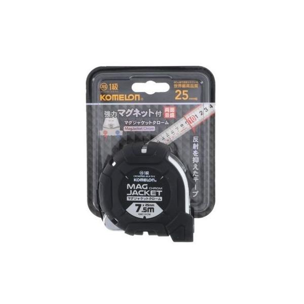 【商品説明】●高級感のあるクロームケースと衝撃を軽減するゴムジャケットです●一人でも楽に測定できる強力マグ爪と両面目盛です。●反射を抑えた読みやすいテープです。●テープ幅:25mm。●テープ長:7.5m。●両面目盛。●JIS1級。●強力マグネット爪。