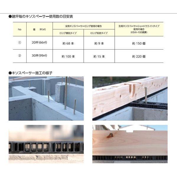 【商品説明】基礎パッキン キソパッキン 土台パッキン 基礎パッキンロング キソパッキンロング 土台パッキンロング 長尺パッキン●用途:基礎全周敷き込みの「簡単施工」を可能にした、ロングタイプ。カットしやすい吉川化成独自の形状です。●材質:オレフィン系複合樹脂(ブラック(黒))●●サイズ:W102×L911×H20mm (※L=全長911mm)●有効換気面積:90.9cm3/m(82.7cm3/本)●対応土台寸法:105角、120角、404(204)、406(206)用※404:89×89mm、204:38×89mm、406:89×140mm、206:38×140mm