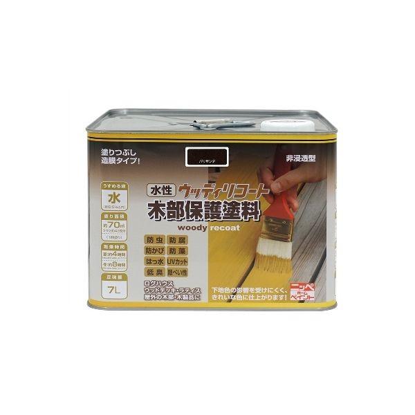 【商品説明】水性木部保護塗料 非浸透タイプ 塗りつぶしが可能●非浸透型ですので、下地色の影響を受けにくく、きれいな色に仕上がります。●隠ぺい効果が高く、塗り替えに最適な低臭の水性木部保護塗料です。●木材の防虫・防腐・防かび・防藻効果に優れ、木の腐食を防ぎます。●耐候性とはっ水性に優れています。●1回塗り仕上げで作業性に優れています。●用途:ログハウス・ウッドデッキ・ラティス(木製フェンス)、ガーデンファニチャー、窓枠・門扉・木戸・下見板・軒天井・板塀・戸袋・羽目板等の屋外の木部・木製品。●容量7L。塗り面積(1回塗り)約70m2(畳約43枚分)●乾燥時間:夏(30℃):約4時間/冬(10℃):約8時間。●塗り重ねるときは1回目がよく乾いてから、2回目を塗ってください。(目安は夏:約4時間/冬:約8時間です)