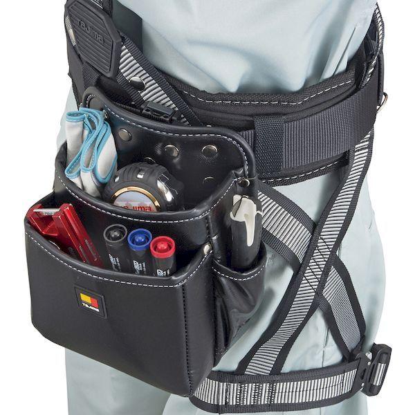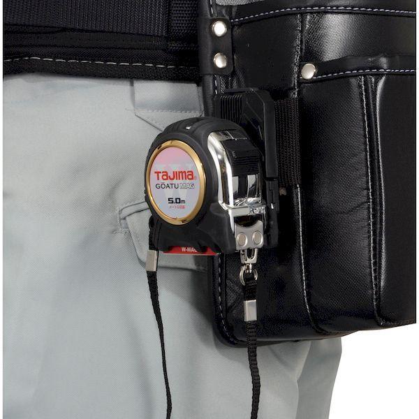 (株)TJMデザインメーカーお問い合わせ:0120-125577【特長】●腰周りの組み換えが簡単な着脱式です。●ベルトを外さず途中から差せる後付式ホルダーを採用しています。●幅広い職人さんに適したスタンダード形状です。●後付けホルダーでコンベックス等のアレンジが可能です。●ベルトからの浮きを防止するサイドクリップ装備です。●アレンジされる場合でも総重量は3kg以下となります。●PVCフィルムでコーティングした高密度ナイロン生地でEVAフォーム材をサンドイッチした5層構造のタジマオリジナル生地を採用しました。【用途】●建築作業現場用着脱式腰袋【仕様】●形状:腰袋 2段中●色:黒●幅(mm):215●奥行(mm):145●高さ(mm):250●ベルト通し幅(mm):50【仕様2】●ベルト通し幅:50mm●セフ取付収納物総重量:3kg●防水加工●換え用品:セフ後付ホルダー用スライドストッパーSF-CHLDST【材質/仕上】●PVCフィルム●高密度ナイロン●EVAフォーム材【原産国】台湾