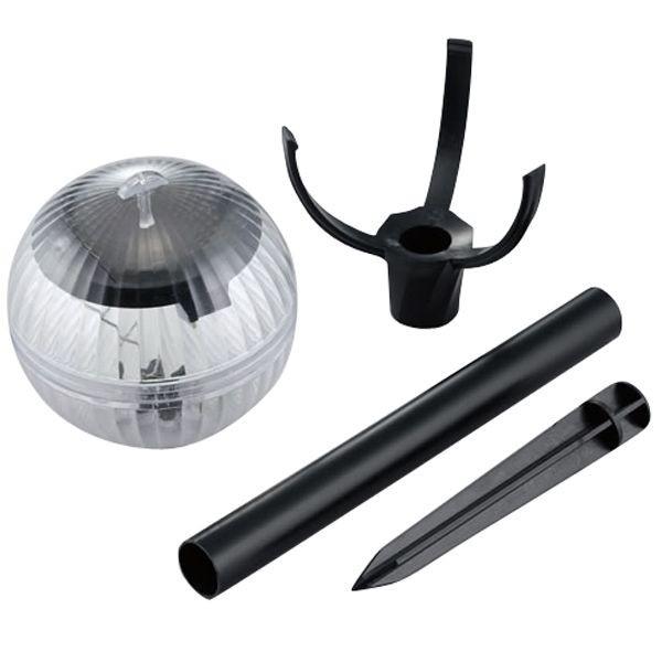 【商品説明】●太陽光を蓄電して光る!●ソーラーパネルで、日中の太陽光を充電します●明暗をセンサーで感知、自動点灯、自動消灯します●カラフルなライトが夜のガーデンを華やかに照らします●ゆっくりと色が変わっていき、放射線状に光が伸びて幻想的です●地面に差し込むだけなので簡単に設置できます、面倒な組立は必要ありません●防水仕様で玄関、お庭、リビングで使用できます!●台座から外しても使用できます。●吊り下げ紐取付穴付き、吊るしてもご使用できます●昼間は庭のインテリアに【仕様/規格】●サイズ(約):440×100×100mm●重量(約):158g(製品1個の重量)●材質:本体…PS樹脂・支柱、固定くさび…ABS樹脂●電源:ソーラーパネル●ニッケル水素充電電池:1V 250mAh×1本●光源:LEDランプ●点灯時間:約6~8時間(フル充電)●充電時間:6時間(晴天時)●防水仕様:IP68相当