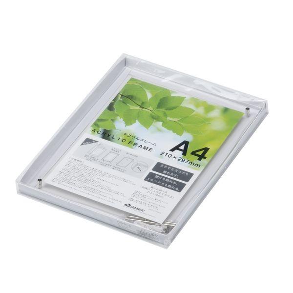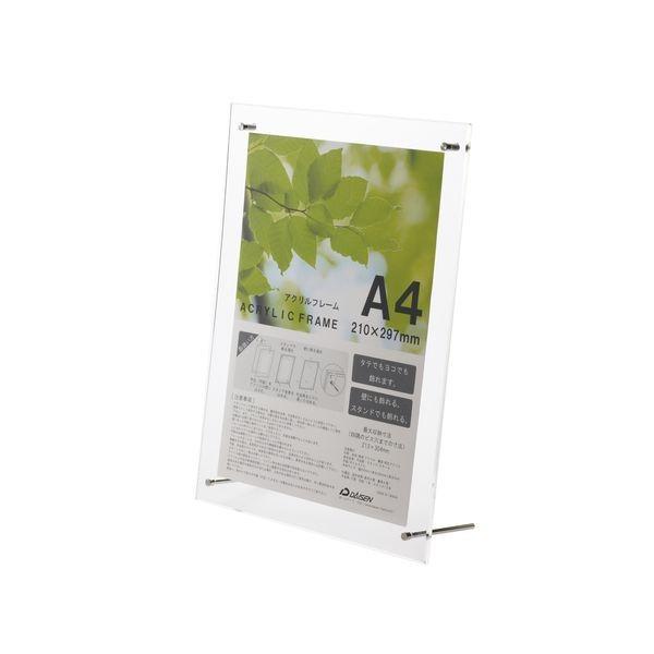 【商品説明】●【材質】アクリル製●【包装形態】下箱に入れて、中を見せてOPP袋入り。●【付属物】台紙、ビス表用4個、ビス裏用4個、スタンド棒2本、吊紐。●【収納寸法】210×297mm●透明なアクリル板2枚で用紙をはさむタイプのA4サイズ対応のフレーム。●吊紐をビスに通して壁に掛けて飾ることができる。●スタンド棒で立てて飾ることもできる。写真 デザイン メニュー プリント プリンター コピー用紙サイズ 飾る 立てる 額 額縁 フレーム アクリル 透明