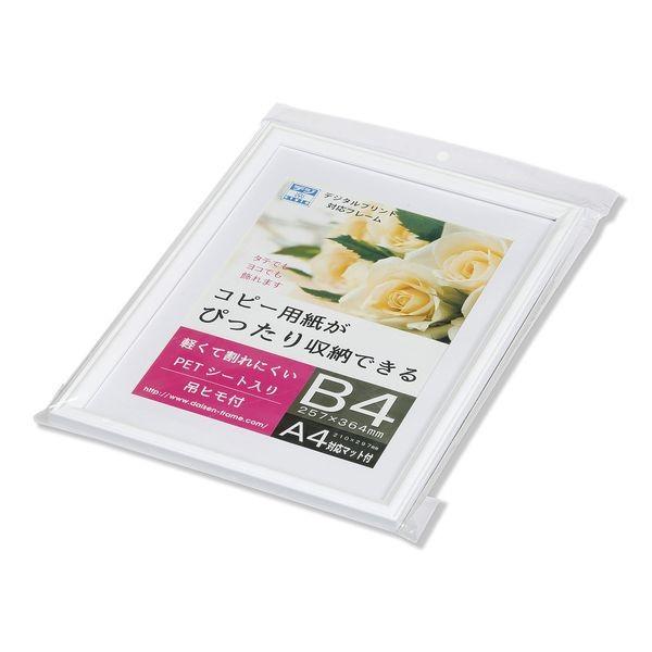 【商品説明】●【材質】表面材:PETシート フレーム材:樹脂製●【裏板】MDFボード トンボ押さえ式●【包装形態】OPP袋入り。●【付属物】薄マット、台紙、吊カン、吊紐。●収納寸法:257×364mm マット窓抜き寸法:200×287mm(A4サイズ対応)●ホワイト色のシンプルなフレームに薄マットを入れたOA用紙サイズ額。●吊カンと吊紐が付いているので壁に掛けて飾ることができる。●マット付きなのでA4とB4の2サイズに対応。賞状 許可証 写真 デザイン プリント プリンター コピー用紙サイズ 飾る 掛