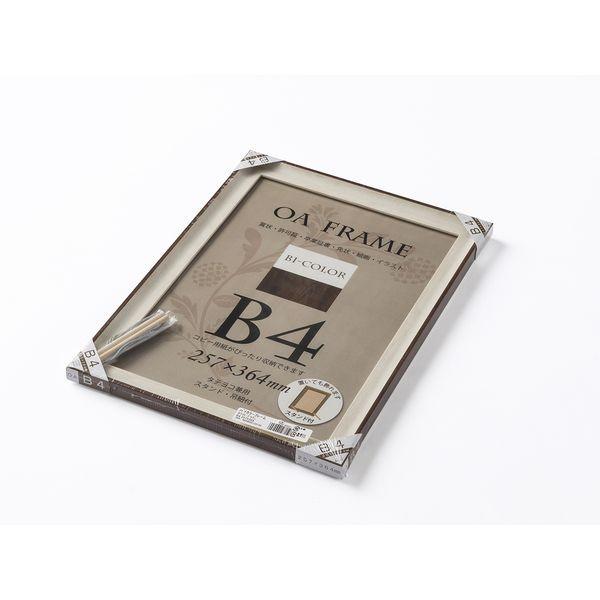 【商品説明】●【材質】表面材:PETシート フレーム材:樹脂製●【裏板】MDFボード トンボ押さえ式●【包装形態】シュリンクパック。●【付属物】台紙、厚み調整材、吊カン、吊紐、丸棒スタンド(差し込み式)。●収納寸法:257×364mm●フレームの正面とサイド面の色が違うツートンフレームのOA用紙サイズ額。●吊カンと吊紐が付いているので壁に掛けて飾ることができる。●付属の丸棒をフレームの裏面の穴に差し込んで立てて飾ることもできる。賞状 許可証 写真 デザイン プリント プリンター コピー用紙サイズ 飾る