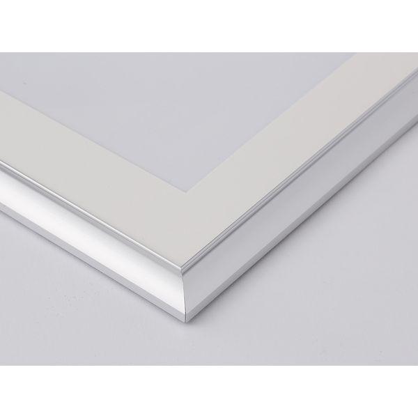 【商品説明】●【材質】表面材:PETシート フレーム材:アルミ製●【裏板】MDFボード トンボ押さえ式●【包装形態】上下箱のふたを開けて裏にまわし、中を見せてシュリンクパック。●【付属物】台紙、Vカット紙マット、吊カン、吊紐。●収納寸法:235×285mm マット窓抜き寸法:181×231mm(六つ切サイズ対応)●シルバー色のアルミフレームにVカット紙マットを入れた写真用の額。●吊カンと吊紐が付いているので壁に掛けて飾ることができる。●マット付きなので2サイズに対応。写真 デザイン プリント 飾る 掛ける 額 額縁 フレーム