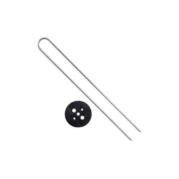 【商品説明】●防草シート、不織布、マルチ、その他シート、ネット類の止め杭に最適。 ●U字型のピンを黒丸の穴に差し込みご使用下さい。●材質 ピン:スチール製 シルバー色 黒丸:ポリエチレン製 黒色●ワイヤー部:長さ30cm×幅3cm防草 マルチ 不織布