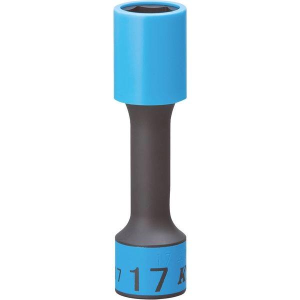 【商品説明】【仕様】●差込角(sq.):12.7【特長】●自動車ホイールナットの緩め・締めに使用する専用ソケット。●ホイールが傷つきにくい樹脂製ガード付き。●サイズはカラーで識別が容易。●ソケット中央部のくびれによるトーション効果により耐久性アップ。●芯ぶれしにくくホイールにも干渉しにくい全長。●口径底部には化粧ナットにやさしいゴムクッション付き。【注意事項】※ソケットとガードは消耗品です。磨耗など異常が認められたら、新しいものと