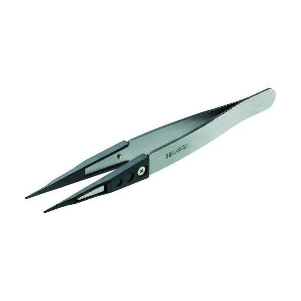 ホーザンメーカーお問い合わせ:06-6567-3132【特長】●チップ交換が可能で、固定式ピンセットに比べ経済的です。●静電気対策、耐熱性、耐薬品性を備えたセラミックピンセットです。●従来のセラミックピンセットの耐性に加えて、静電気対策が必要な作業でも使用できます。●ステンレスの約1/7の熱電導率で熱が伝わりにくいのでハンダ付け作業に適しています。●ESD対策仕様商品です。【用途】●静電気対策、耐薬品、非磁性、耐摩耗性、耐熱性(700℃)が必要な環境での使用。【仕様】●全長(mm):128●幅(mm):10●先端幅(mm):0.8●先端:直型●チップ先端幅(mm):0.8【仕様2】●チップ色:黒●交換チップ品番:P-646D-1●耐熱温度:700℃(チップ)●ESD管理値:Rg<1×10[[の12乗]]Ω●フタル酸系4物質を含むRoHS規制10物質に対応【材質/仕上】●本体:ステンレス●チップ:ジルコニアセラミック【原産国】日本