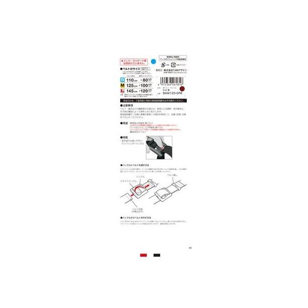 (株)TJMデザインメーカーお問い合わせ:0120-125577【商品説明】●革手袋でも操作が簡単な軽量アルミフィンガーバックル●腰の強い特厚50mm幅ナイロンベルト●ベルトカラ―:ドット赤●ベルト幅:50mm●ベルト長さ:1250mm●参考ウエストサイズ:約100cmまで●胴ベルト:ナイロン●バックル:アルミ