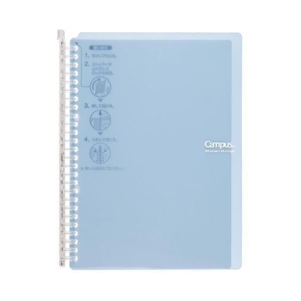 コクヨメーカーお問い合わせ:0120-201-594【商品説明】●表紙が折り返せるスマートリングタイプ(リング内径/12.5mm)●スリムで持ち運びがしやすく、省スペース化が可能●最大60枚収容●ストッパー機能付きのため、鞄の中で不用意に開くことがありません●筆記にオススメなオリジナル原紙/「さらさら」の原紙はにじみにくく、インクが裏に透けにくく、長期保存に適した中性紙です。●サイズ/B5タテ●仕様/26穴●樹脂製とじ具 ●ルーズリーフ(ドット入り罫線ノ-836BTN)10枚、扉紙1枚付き●表紙/再生PP●色/ライトブルー
